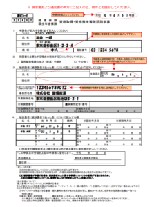 日本年金機構(年金事務所)の被保険者資格取得・資格喪失等確認請求書(記入例) はこちら↓
